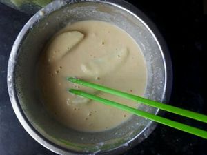 自发粉,我比较喜欢用 好过普通面粉。炸东西必备。加适量水,鸡蛋一个 然后搅拌后可以把苹果放里面挂糊了。