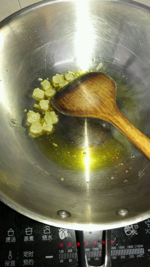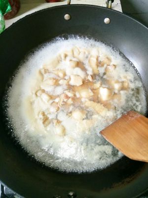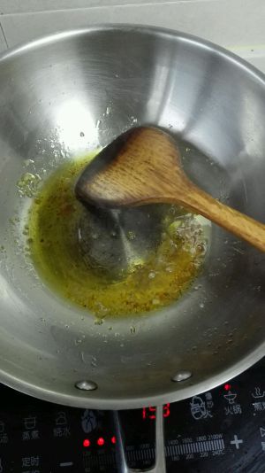 锅内放少许油,放入冰糖开小火搅拌至冰糖慢慢融化。
