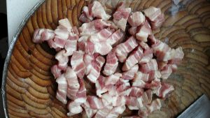 将五花肉洗干净切丁备用