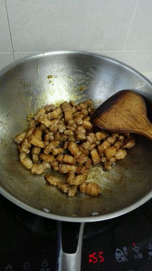 肉炒到稍微有一点焦黄。