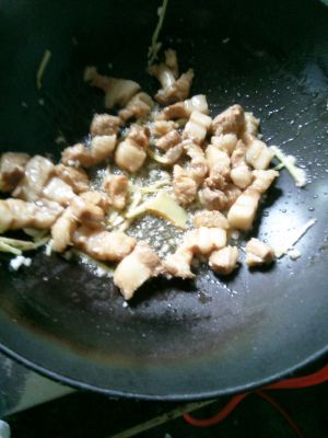 倒入少量的油将多余的五花肉油炒出来,然后将五花肉捞出