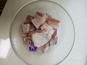 猪五花肉切成肉丁,冷水下锅,水没过肉