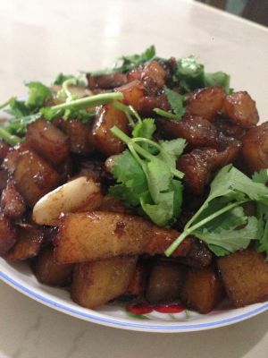 出锅前浇一瓶盖醋,没有装盘,成品如图。香味扑鼻,肥瘦相宜。我不能吃大荤的,爸爸和东哥尝了都说赞~\(≧▽≦)/~