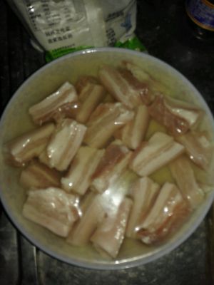 超市买的五花肉,切好洗净!把肉的皮用到刮刮,把多余的油脂和毛刮去(其实是强迫症!)