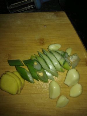 图片上的勺,一勺老抽,两勺生抽,两勺料酒,两勺米醋!翻炒一两分钟!