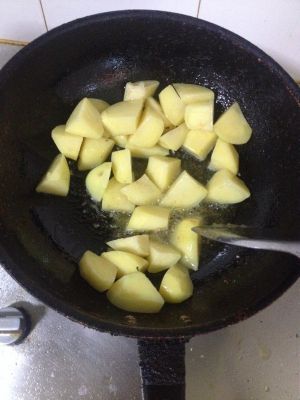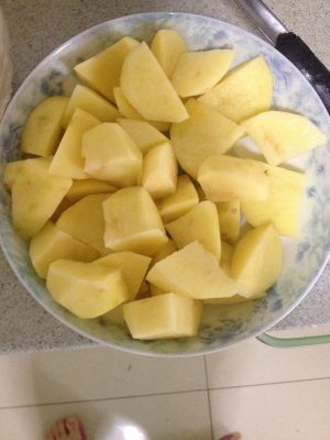 土豆去皮切块,不要太小,容易炖飞。待用