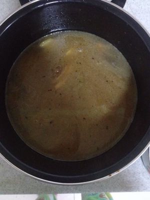 放入八角,桂皮,香叶,葱姜蒜,加调味,盐,味精,加入清水烧开。