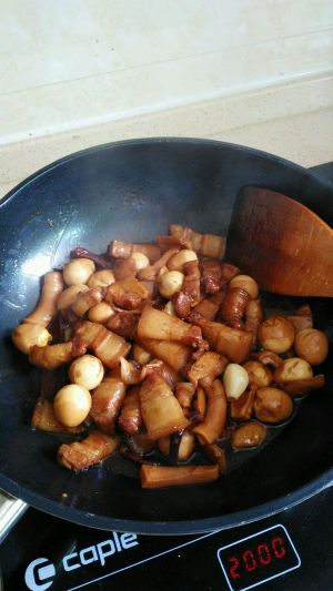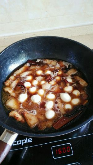 加入热水没过肉,放入鹌鹑蛋,盖上锅盖煮二十分钟。