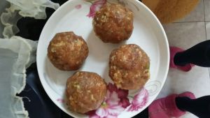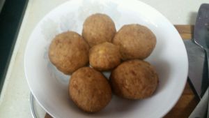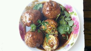 将煮熟的鸡蛋裹入肉馅中,团成丸子状