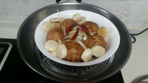 按自己喜欢的大小捏成丸子,入锅起汽后蒸6-7分钟,凉透