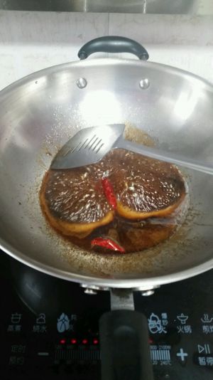 锅中少量油,倒入高汤,放花椒大料桂皮,盐,冰糖,大葱,闷二十分钟后,倒入水淀粉,收汁,点两滴醋。出锅,放香菜