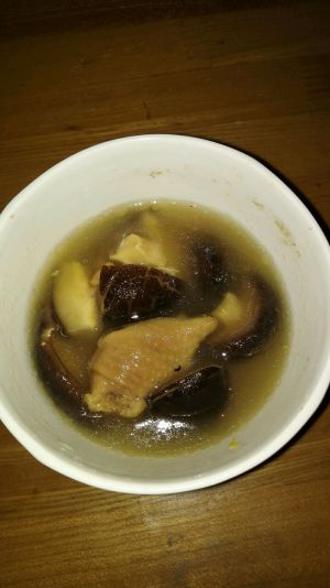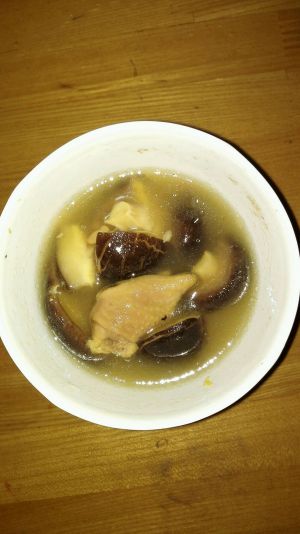 1/鸡和排骨冷水下锅,加料酒少许花椒焯水后待用;2/麻油小火将姜片炒成褐色;3/加入鸡和排骨煸炒;4/加入纯净水煮开后倒入高压锅煲40分钟;5/放入香菇煮5分钟即可。