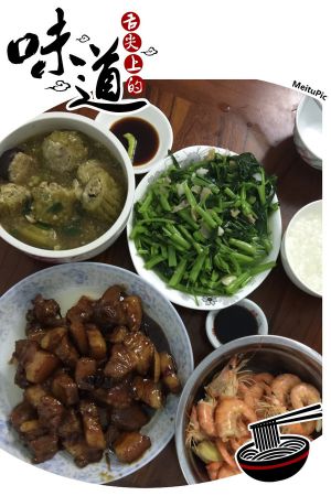 色上的不错,色香味俱全的红烧肉!顺便晒一下我家的晚餐