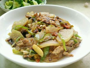 待到锅内的汁收的差不多的时候加入葱段,翻炒片刻之后就可以起锅了