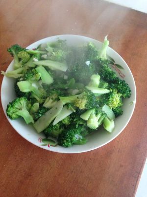 开水下锅,撒入适量盐,煮三分钟,至西兰花九分熟,捞出沥干水分