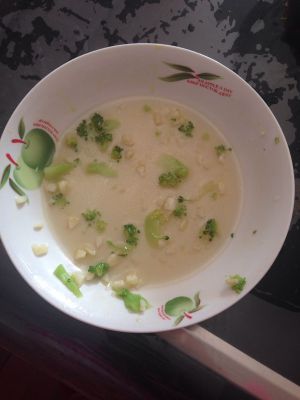 西兰花放在烧开的水中焯一下,至西兰花变色后即刻盛出过冷水