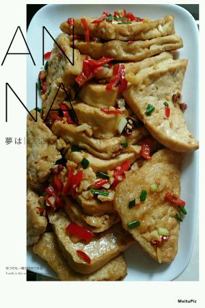 豆腐切三角形,姜、蒜、辣椒切沫,小葱切段备用。