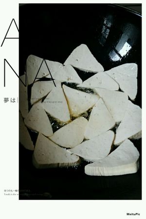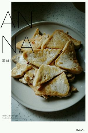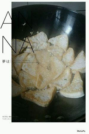 豆腐切片后,锅内放油,油烧热后放入豆腐片