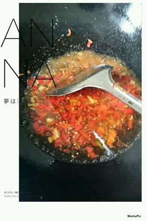放油烧6成热,依次放入生姜,大蒜,花椒,辣椒炒香。