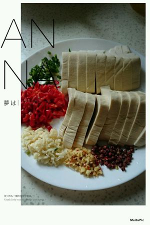 用葱花和姜爆锅,然后把配料先放,一起煸炒,不用太长时间,熟了就可以,放点盐就可以,最后把豆腐倒进去翻炒一会,感觉差不多把事先准备好的淀粉水倒进去……炒一会就可以出锅了