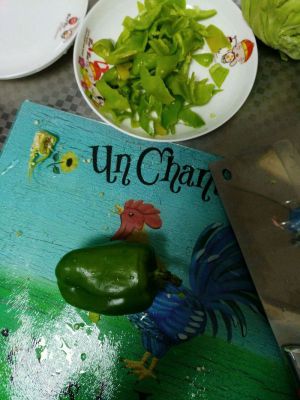 辣椒青椒清洗干净,切片~随便切 自己喜欢的形状就好