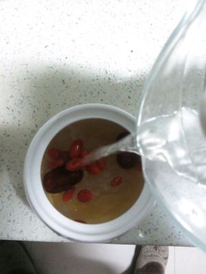 将事先同样用水泡好的红枣和枸杞,连同燕窝一起放入炖盅,加入纯净水或冷开水没过燕窝一至二厘米。