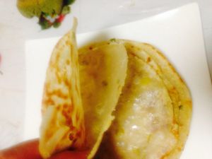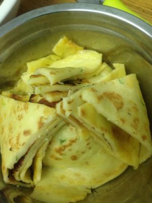 锅烧热 少倒点油 等油热了 把和稀的面到一点到锅里 我用的是平底的锅