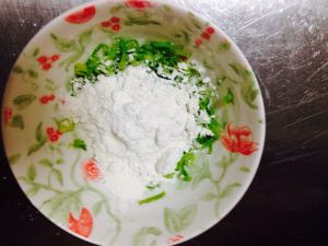 香葱里放少许面粉和盐