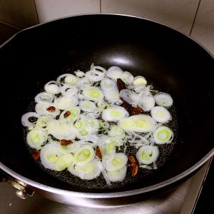 加入葱片,继续小火熬葱油~一定是小火,火大了容易有煳味~切片可以缩短熬葱油的时间~