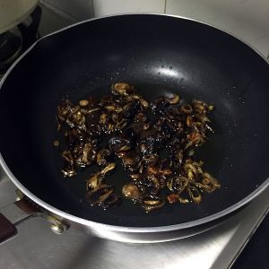 等待葱变成咖啡色,油就算好了~葱弃置不用~