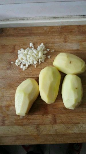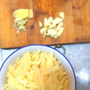 准备材料 切好葱姜蒜 土豆切丝泡入清水中