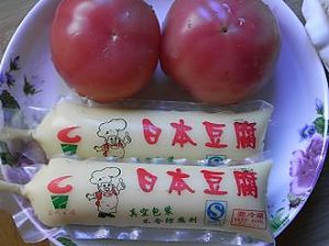 白豆腐干洗净 切成簿片 西红柿、绿菜椒切成块。