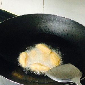 炸制成金黄色,捞出。