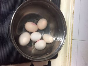 鸡蛋洗净,放入凉水中,沸后煮7~8分钟。