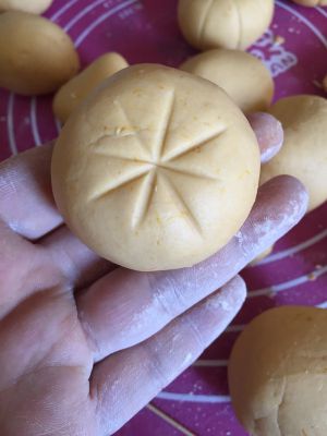 加入糯米粉,糯米粉具体多少看你们做的南瓜泥的多寡。逐步逐步的加进去,直到糯米团不粘手就可以了。中间加一点点炼奶增加奶香味和一点点的甜味。