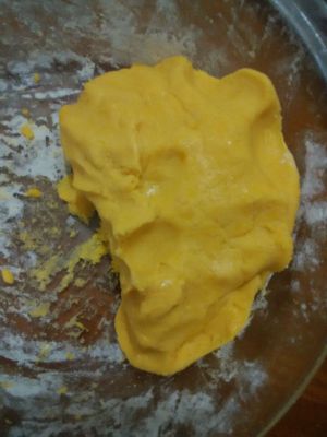 倒入水磨糯米粉,揉成光滑面团。需要量多就加粉加水,我是没加水,直接用的南瓜自身水份。