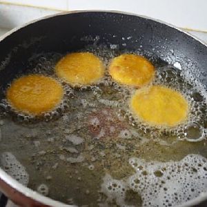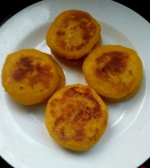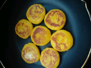 锅中放油,油热后小火,放入南瓜饼,两面煎黄即可