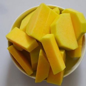 南瓜去皮去籽切薄片放微波炉高火五分钟至熟