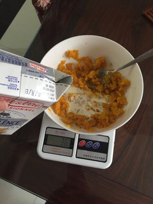 先把南瓜去皮洗干净蒸熟 然后往蒸熟的南瓜里方入糖搅拌均匀 这部忘了拍了