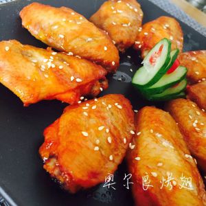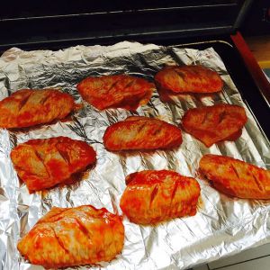 十分钟后打开烤箱,刷鸡翅料,翻到正面,刷烤鸡翅料,再烤10分钟左右就好啦。