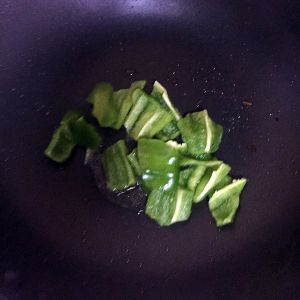 剩下的油翻炒青椒两下即可.