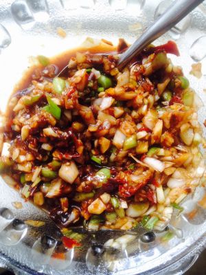 葱姜蒜切沫加豆瓣酱和生抽拌匀