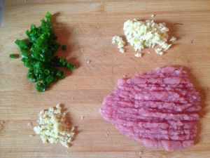 肉末、蒜蓉、姜泥、葱花,分装备用。