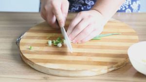 烤箱在烤时,用锅把肉末炒一下,然后加适量蚝油(看你有多少条茄子,一勺大概两条茄子),再加上葱花,拌匀。