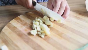 蒸的时候我们可以调蘸料,生姜,青椒,大蒜。把他们变成沫。