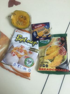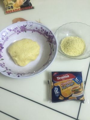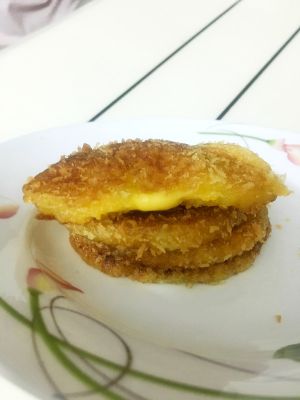 南瓜,芝士片,糯米粉,面包糠。我没有放糖,喜欢甜的可以自行添加哈。