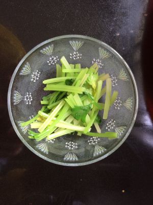 芹菜洗净放入锅中焯水捞出沥干,切段放入碗中备用。