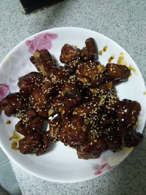 锅中放油倒入排骨翻炒,加入生姜,料酒炒至锅中无水份,加入生抽,大火烧开,加入少量盐,醋,转中小火炖四十分钟,烧至汤汁粘稠再加入醋,楜椒,味精