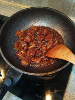 排骨入锅小火慢炖,汤汁收紧挂色即可出锅。出锅前放少许盐调味;