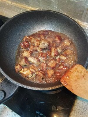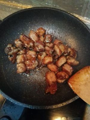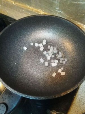 炒糖色:锅中放油,放几冰糖中小火炒至冒泡